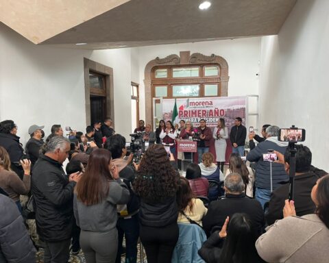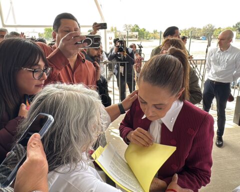 La presidenta del Comité Ejecutivo Estatal de Morena, Rita Ozalia Rodríguez Velázquez, entregó un documento a la presidenta de México, Claudia Sheinbaum