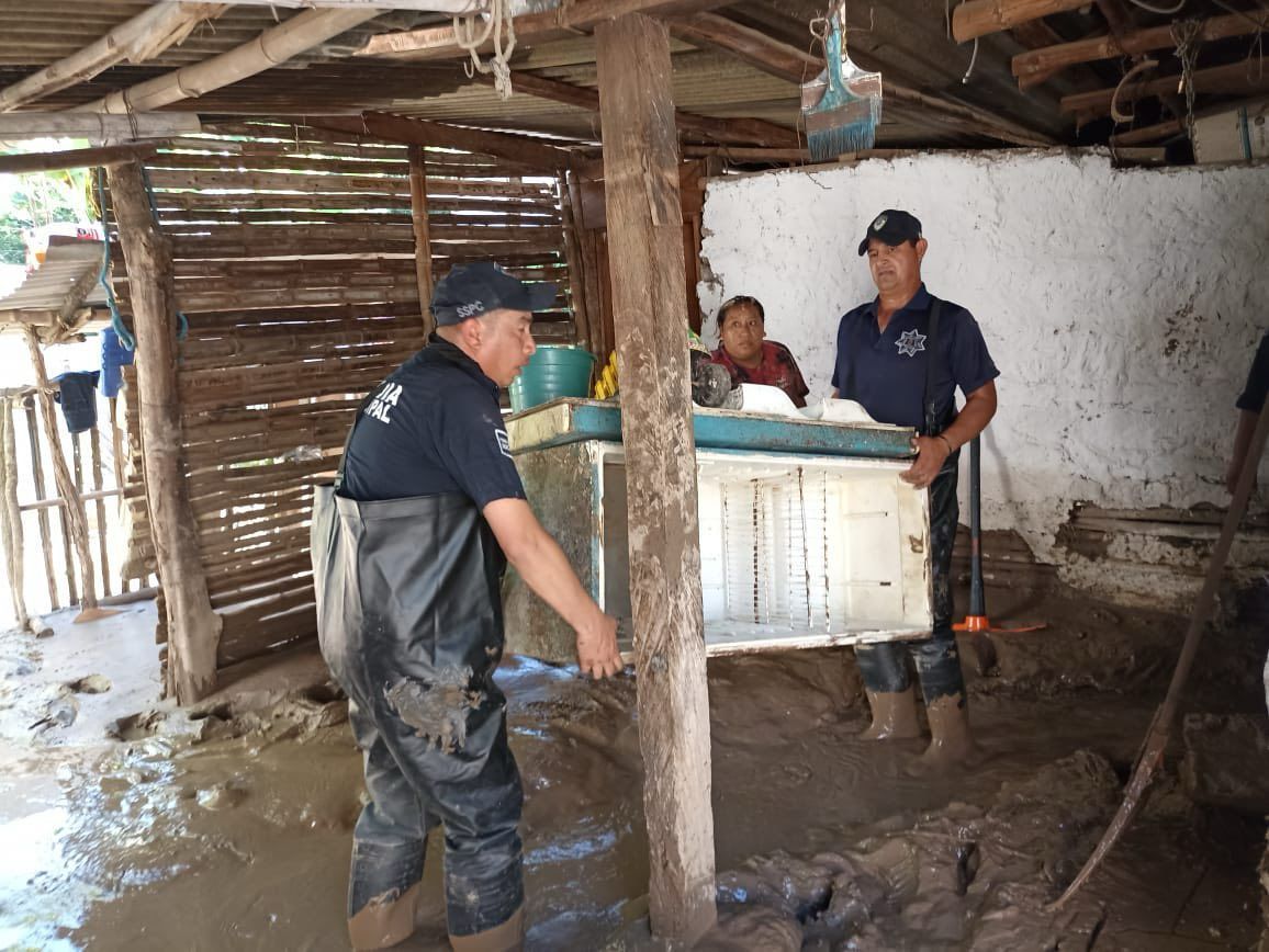 “Mi reconocimiento a nuestros oficiales de la Policía de la Capital que se encuentran en la comunidad La Laguna, en Tanquián, colaborando en las labores de reparación de los daños ocasionados por las recientes inundaciones”, expresó Galindo Ceballos.