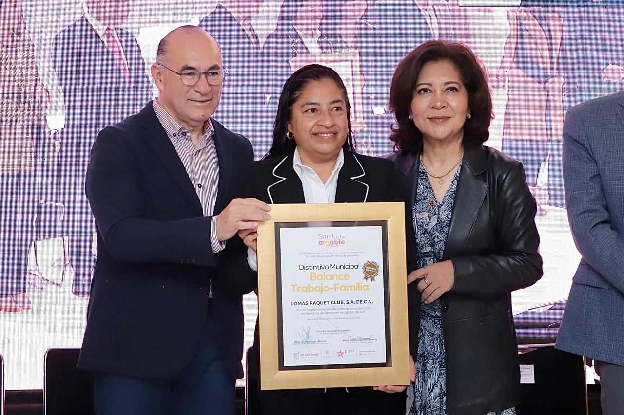 SLP.- El Gobierno de la Capital y el DIF Municipal entregaron el Distintivo Balance Trabajo-Familia, en su 3era edición, a 46 empresas que han decidido poner al centro el bienestar de su gente y apostarle a un modelo laboral más humano. La Presidenta del DIF Municipal, Estela Arriaga Márquez, destacó que este programa nació de una convicción profunda: “las familias son el corazón de un San Luis amable y por ellas vale la pena trabajar todos los días”.