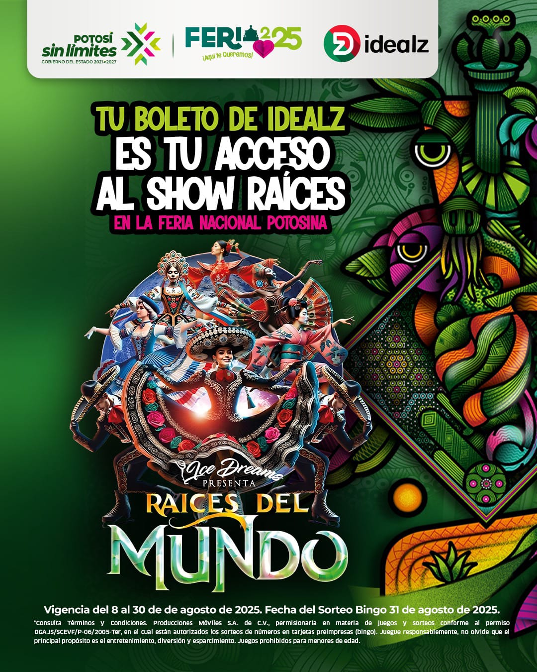 La Feria Nacional Potosina (Fenapo) 2025 sigue sorprendiendo con experiencias sin límites y este año, el boleto de participación del Sorteo Bingo de Idealz.mx no solo da la oportunidad de ganar increíbles premios, sino que también será el boleto gratuito para el espectáculo de patinaje sobre hielo “Raíces del Mundo”.