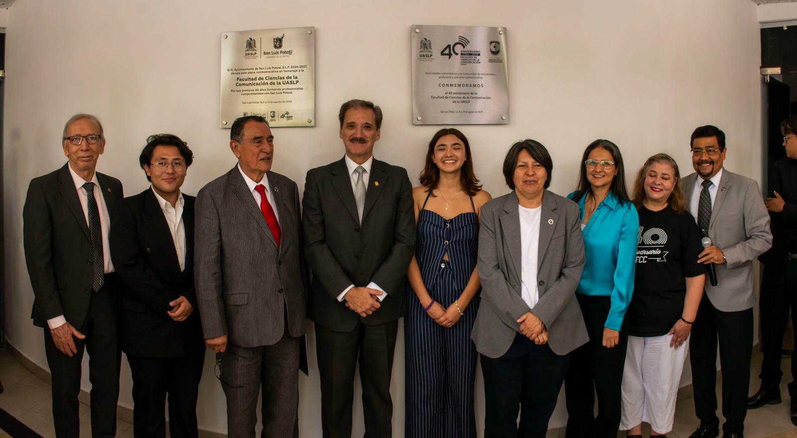 La Facultad de Ciencias de la Comunicación de la Universidad Autónoma de San Luis Potosí (UASLP) conmemoró 40 años de formación de profesionales del área con la develación de una placa, en un acto encabezado por autoridades universitarias y al que asistieron docentes, estudiantes, personal administrativo y un importante número de egresados, reunidos en el auditorio de la entidad.