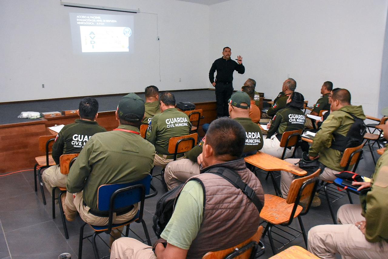 Para fortalecer los conocimientos y mejorar las habilidades de atención a víctimas de accidentes viales, fortaleciendo la cercanía y el apoyo a la ciudadanía, por instrucciones del Alcalde de Soledad de Graciano Sánchez, Juan Manuel Navarro Muñiz, oficiales de la Guardia Civil Municipal que forman parte del Área de Peritos de la Dirección de Seguridad Vial y Movilidad, recibieron una capacitación en primeros auxilios por parte de personal de la Unidad de Paramédicos de Protección Civil Municipal.