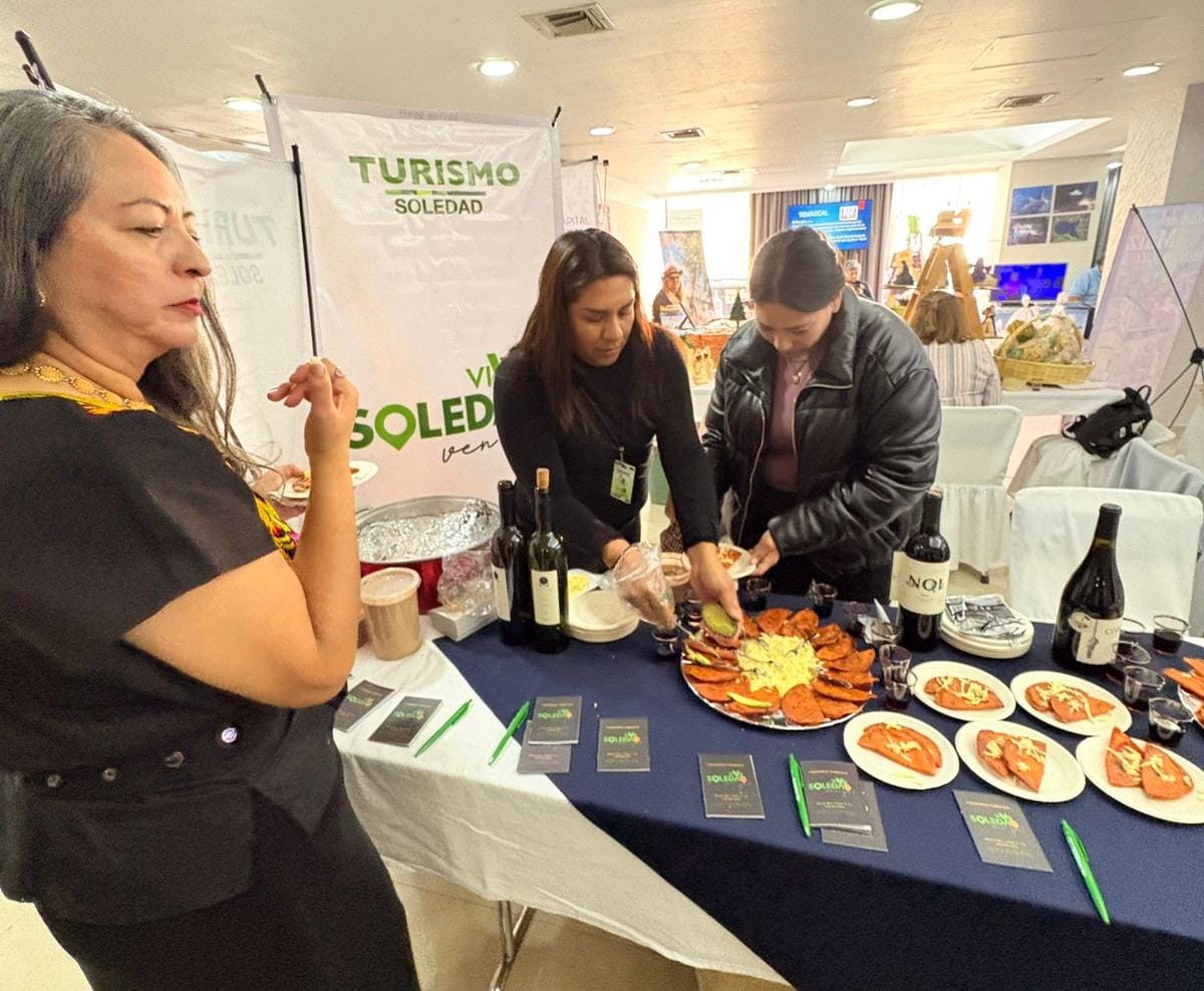 - El municipio soledense cautivó a visitantes con sus enchiladas, vinos locales y su hospitalidad en la Feria Turística organizada por la Asociación Mexicana de Hoteles y Moteles.