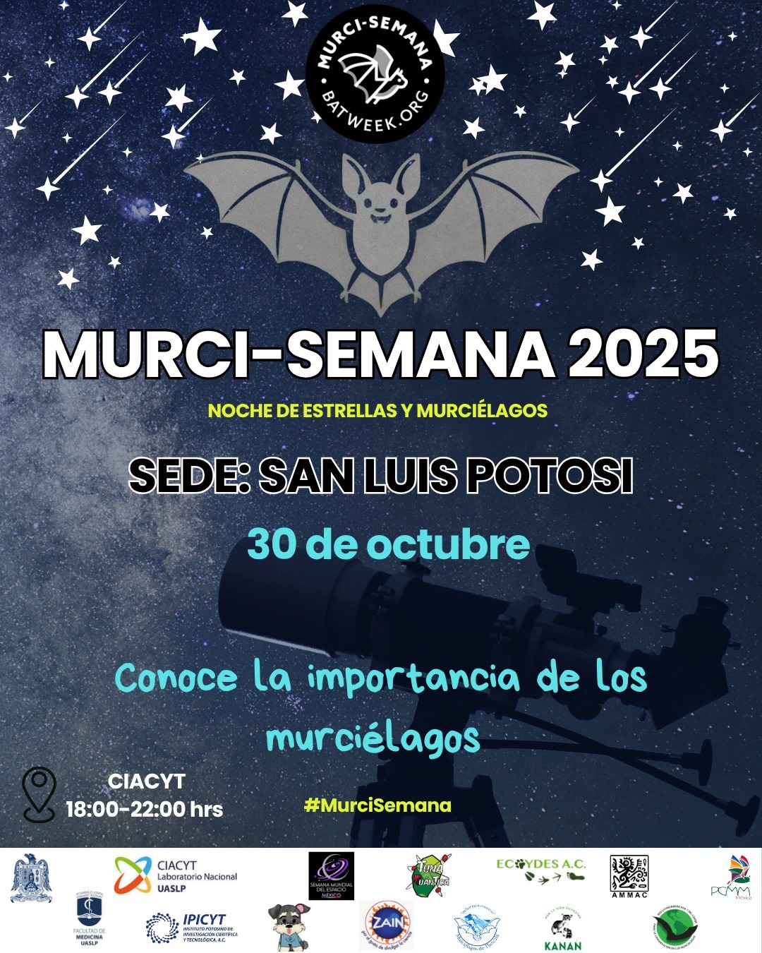 El investigador invitó al público potosino a participar en el evento Murci Semana 2025, que se realizará el 30 de octubre, de 18:00 a 22:00 horas, en las instalaciones de la Coordinación para la Innovación y Aplicación de la Ciencia y la Tecnología (Ciacyt), ubicadas en avenida Sierra Leona #550, colonia Lomas Segunda Sección. La entrada será libre.