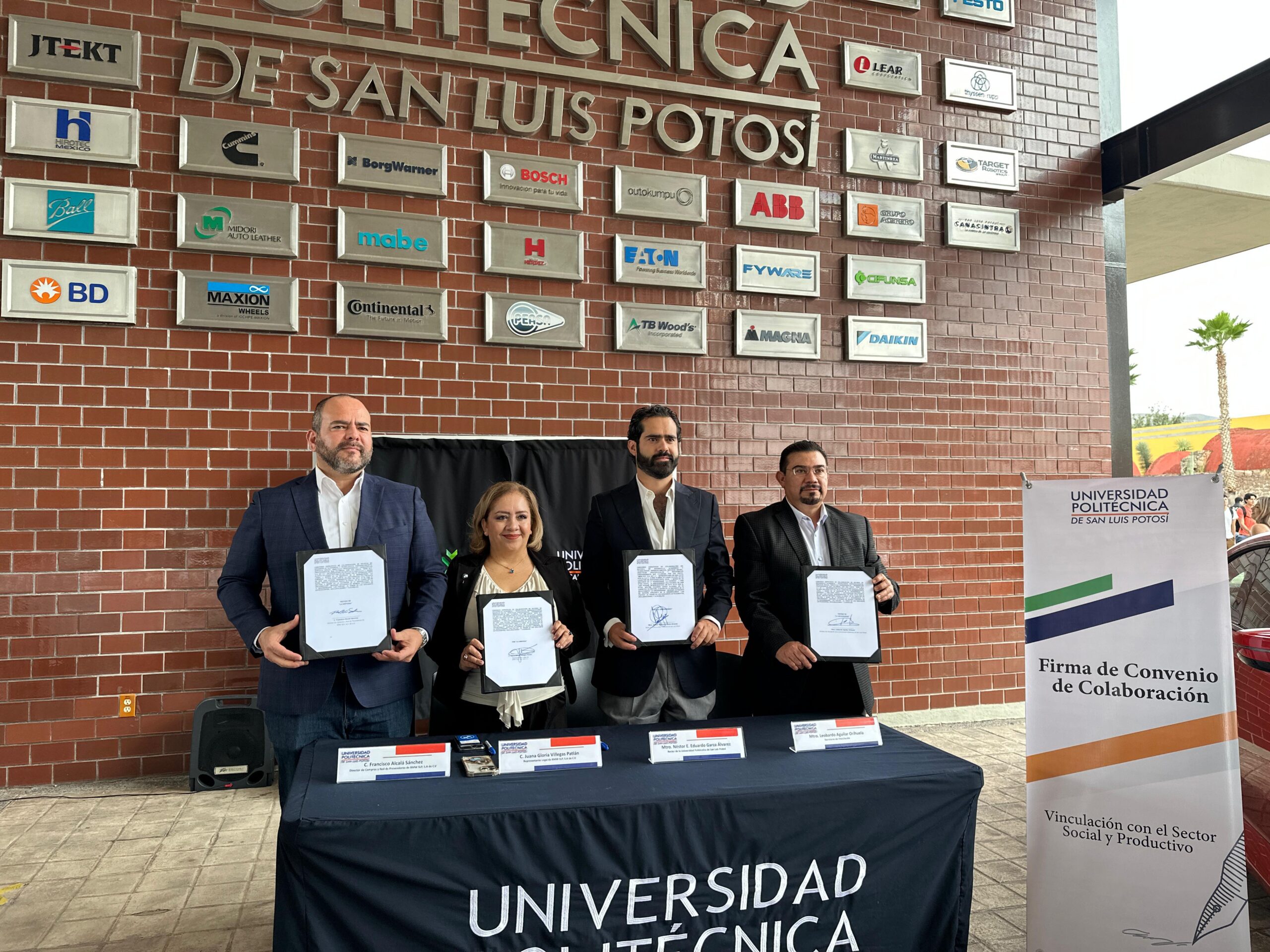 Para brindar oportunidades sin límites a las y los jóvenes estudiantes la Universidad Politécnica de San Luis Potosí (UPSLP) fortalece la vinculación entre las y los alumnos y empresas instaladas en la Entidad, por lo que firmó un convenio de colaboración con la empresa alemana BMW Group, así como la develación de las placas conmemorativas de BMW Council SLP y BMW Group en su emblemático muro de vinculación.