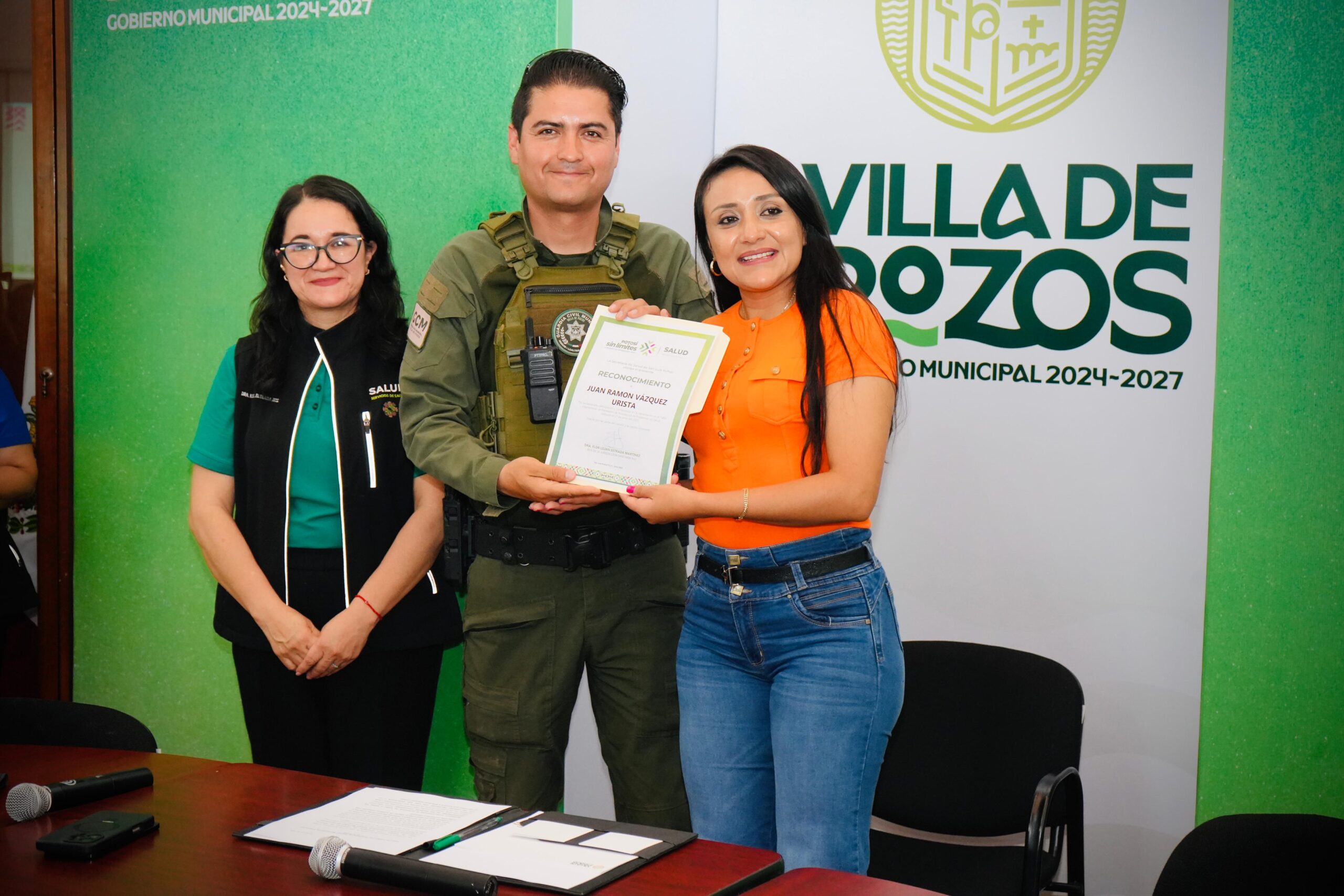 Durante la reunión, se realizó la entrega de reconocimientos por parte de la Jurisdicción Sanitaria No. 1 a diversos directivos municipales, como los representantes de las áreas de Educación, Protección Civil, Guardia Civil Municipal, entre otros, quienes participaron activamente en el taller intersectorial de planeación y priorización de problemas de salud en el municipio.