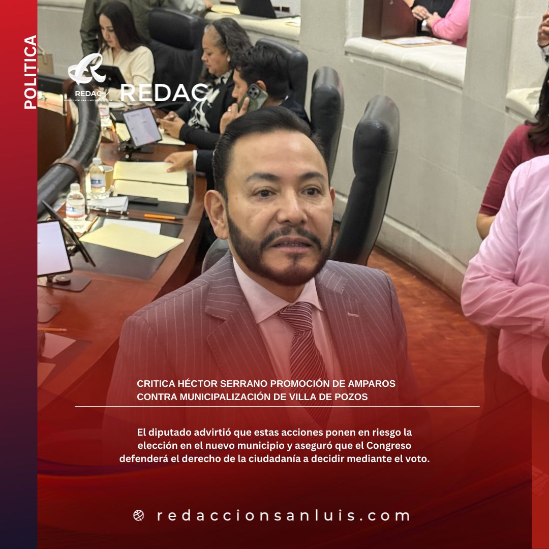 El diputado local Héctor Serrano criticó que un personaje esté promoviendo amparos en contra del proceso para que Villa de Pozos sea reconocido como municipio, al considerar que esta acción representa un intento por frenar un procedimiento que ya cumplió con los requisitos establecidos por la ley.