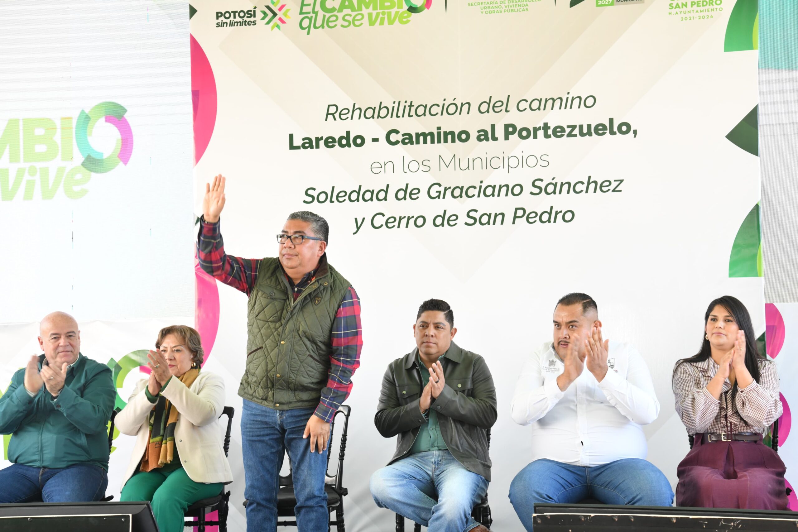 Juan Manuel Navarro Muñiz, Alcalde de Soledad de Graciano Sánchez, acompañó el arranque de los trabajos de reconstrucción del camino Laredo-Camino a Portezuelo, una obra impulsada por el Gobierno del Estado que beneficiará directamente a las familias soledenses y de municipios vecinos, al tratarse de una vialidad estratégica ubicada en la intersección territorial y de alto tránsito diario entre Soledad, San Luis Potosí y Cerro de San Pedro.