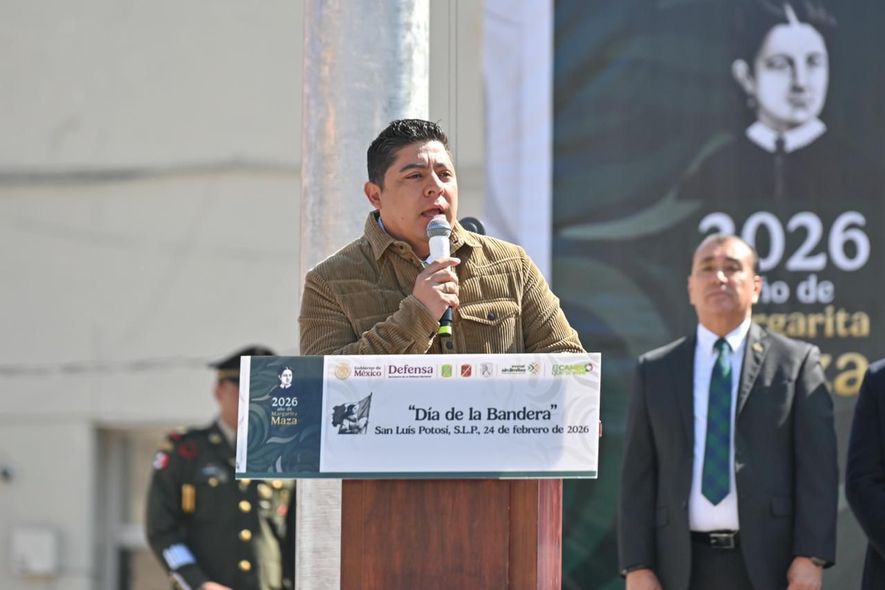 El Gobernador de San Luis Potosí, Ricardo Gallardo Cardona, conmemoró en la Plaza de los Fundadores el 24 de febrero, Día de la Bandera, en donde hizo el llamado a estudiantes, madres y padres de familia, así como a la ciudadanía, a honrar sin límites el símbolo de nuestra Patria, con respeto, orgullo e identidad nacional.