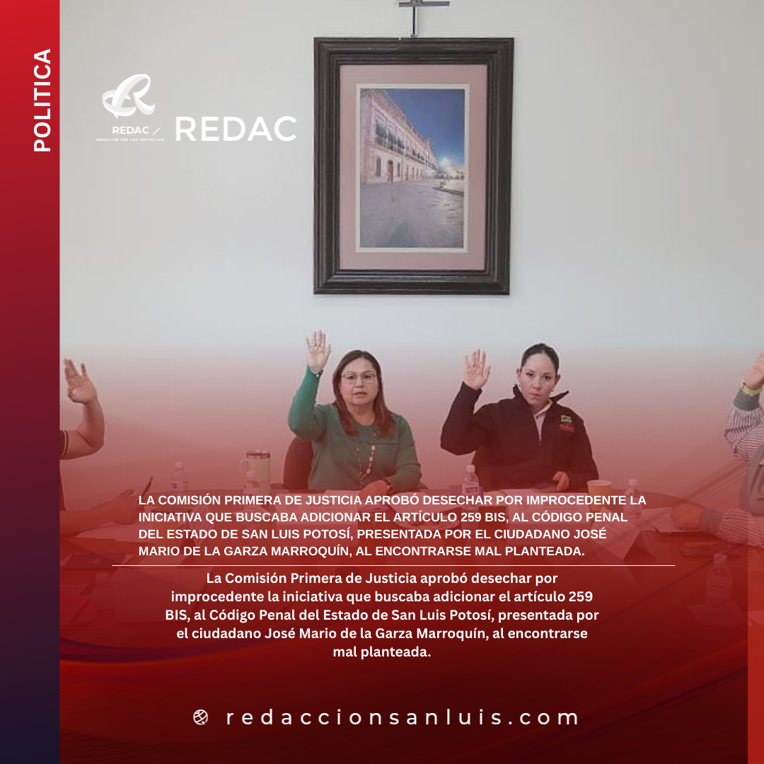 LA COMISIÓN PRIMERA DE JUSTICIA APROBÓ DESECHAR POR IMPROCEDENTE LA INICIATIVA QUE BUSCABA ADICIONAR EL ARTÍCULO 259 BIS, AL CÓDIGO PENAL DEL ESTADO DE SAN LUIS POTOSÍ, PRESENTADA POR EL CIUDADANO JOSÉ MARIO DE LA GARZA MARROQUÍN, AL ENCONTRARSE MAL PLANTEADA.